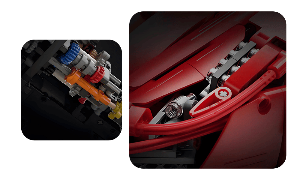 1400'den fazla hassas parçadan üretilen bu 1:14 ölçekli model , gerçek makinenin en belirgin özelliklerini yansıtıyor. Elektrolizle kaplanmış mat boya kaplaması zarafeti yansıtırken, özel jantlar , hareketli pistonlara sahip tamamen detaylı bir V12 motor bölmesi ve aktif aerodinamik elemanlar , minyatür bir mühendislik ustalığını sergiliyor.